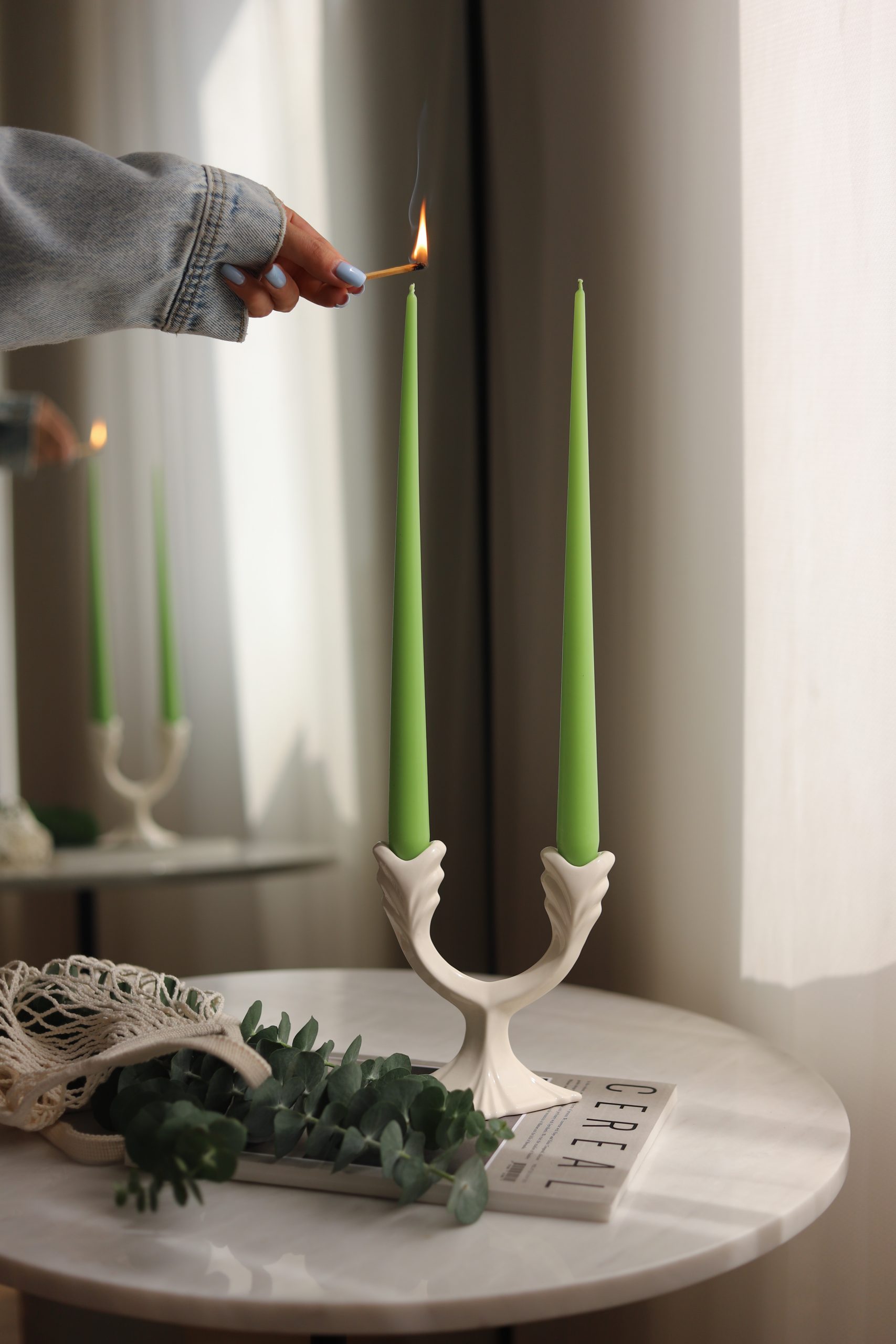 ترکیب شمعهای قلمی رنگی با شمعدانهای چوبی یا فلزی میتواند تأثیری چشمگیر در فضا ایجاد کند.